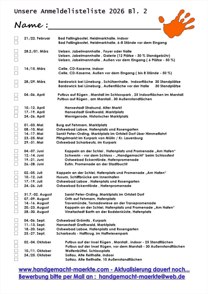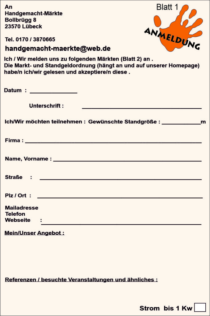 Anfragen und Bewerbungen bitte immer per Mail an : handgemacht-maerkte@web.de oder über unser online-Formular auf dieser Seite